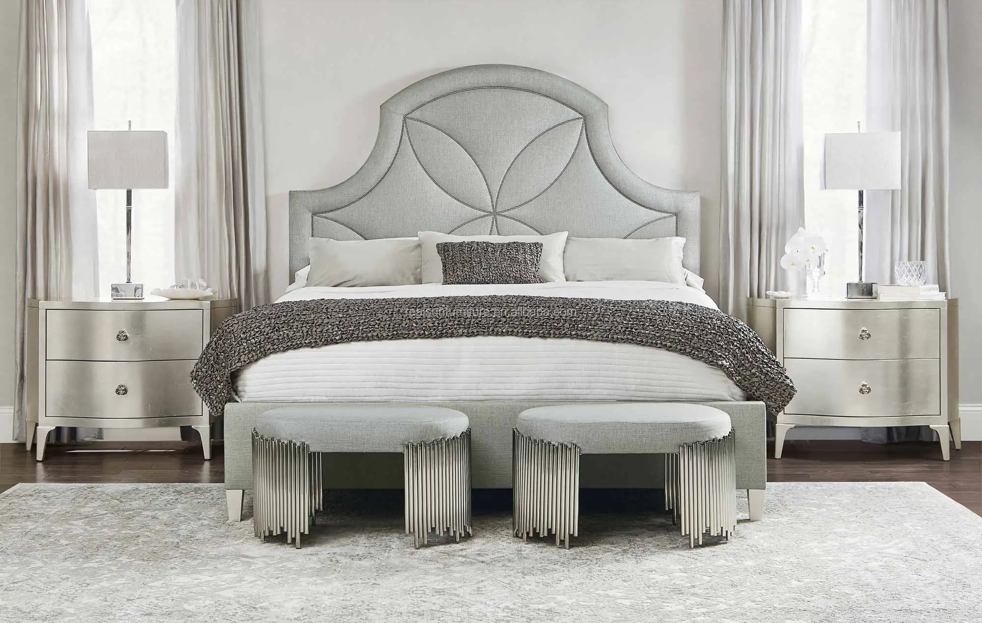 Fresh flanged edges and subtle seaming tailor our flange bed for the modern bedroom. Front flower bed contemporary furniture ideas. Cushioned upholstered bed frame and headboard. Upholstered headboard bedroom sets : Queen, king, cal king, grand king, and all custom size mattresses. This bed and bench set was recently completed for. King wall mount gray upholstered headboard adjustable brown leather straps and black metal rail. Mixing leather and fabric grey and orange. The back rest/ headboard and matress is not included with the bed. These complete furniture collections include everything you need to outfit the entire bedroom in coordinating style. Elegant 3 pieces queen bedroom set linen curved upholstered platform bed and black cherry nightstand (queen upholstered bed+ 2night stand). Sophisticated and dominating, the bromley bed is made to be a wonderful centerpiece for a master or guest bedroom. Curves in all the right places and so custom!